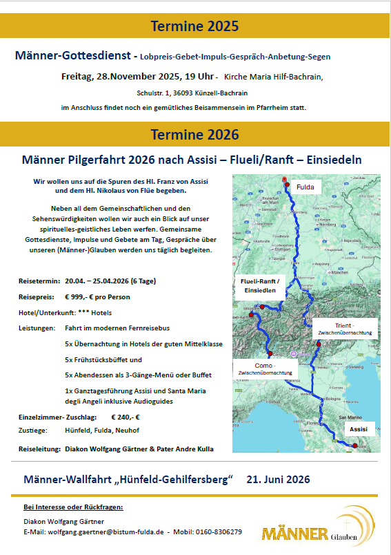 28.11.2025 19 Uhr - Männer-Gottesdienst, Kirche Maria Hilf Bachrain